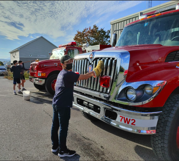 In the community, students washed and cleaned the fire trucks, organized summer camp supplies, worked in the ambulance bays, packed rummage sale items for donation, and worked on various projects with the Historical Society.