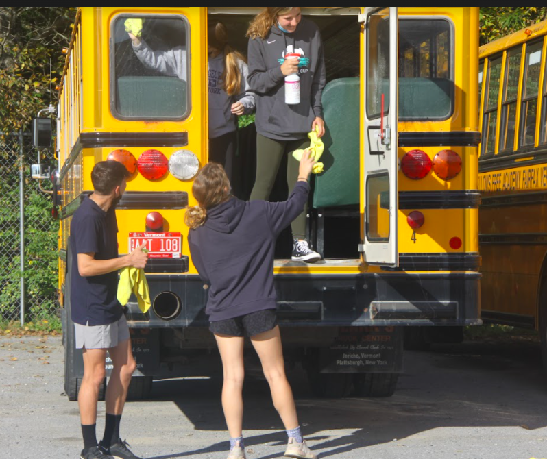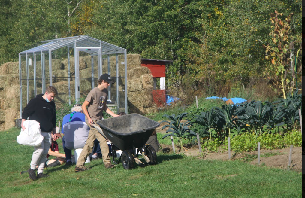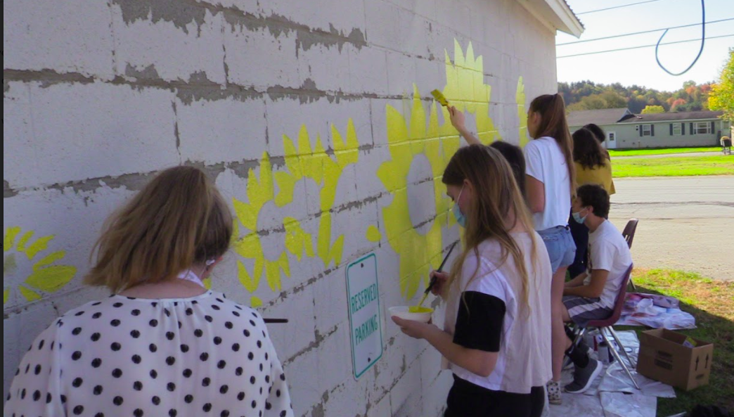 Students worked hard to beautify the exterior campus, including cleaning busses, painting a sunflower mural, repainting safety lines and benches. They also worked on clearing trails in the woods and recreation paths, gleaning crops from the school farm to donate to the local food shelf, and planting flowers in Ada’s garden.