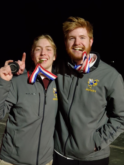 Although their school days have been spent in a different location than their Milton teammates, Munson, Seaman and Mathieu are very much Yellowjackets on the ice. This was most evident in the championship game, when at one point as the Yellowjackets were battling back from a 3-0 deficit, Munson, who plays in goal, made a nearly impossible save and was rewarded with chants of “Ted-dy! Ted-dy! Ted-dy!” from the largest crowd of the year.