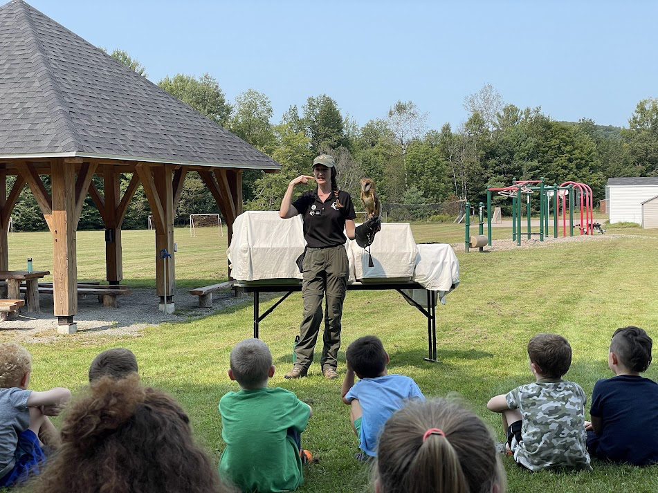 VINS, the Vermont Institute of Natural Science, located in Quechee, Vermont, hopes to “motivate individuals and communities to care for the environment through education, research, and avian wildlife rehabilitation.” As part of their mission, they bring raptor ambassadors throughout Vermont. On a beautiful Fletcher afternoon, VINS rolled into FES with a Barn Owl, a Screech Owl, a Red Tail Hawk, and an American Kestrel–a member of the Falcon Family