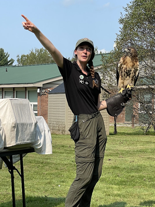 On September 9th, an actual Falcon visited the Fletcher Elementary School–along with some of her friends. The Falcon is our School Mascot. Many of us had never seen an actual Falcon, especially up close. Starting the school year with a visit from VINS, to connect our School Mascot with the Real Deal, was eye-popping, brain stimulating, and community building.