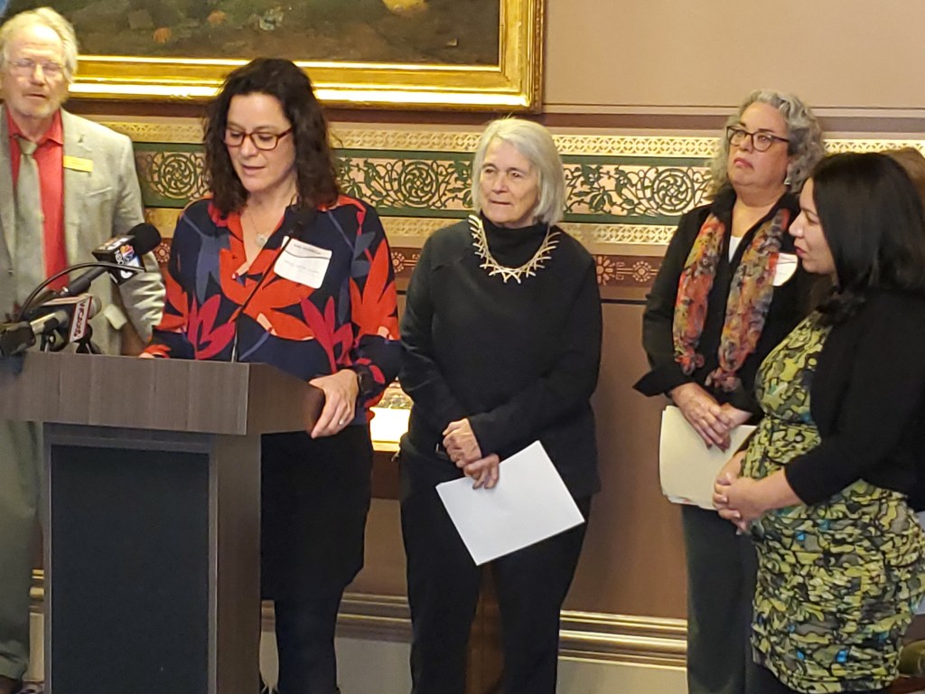 The students in Sara Villeneuve’s Holocaust Studies Language Arts class played a very important part in helping to launch the project. Villeneuve, who serves as an educational consultant with the Vermont Holocaust Memorial, has been using many of the lesson plans in her classes throughout the fall semester. On January 18th, the students traveled to the Vermont State House to be part of the press conference announcing the bipartisan resolution declaring January 23-27, 2023 Vermont Holocaust Education Week.