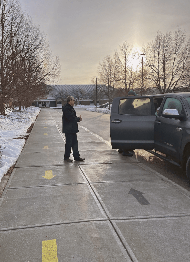 Each morning students across FWSU are greeted as they enter the buildings or classrooms to start their day. Sometimes it’s in rain gear with an umbrella, sometimes it’s in full winter gear with ski goggles, and sometimes it’s with silly costumes and music to just bring a smile to someone’s face.