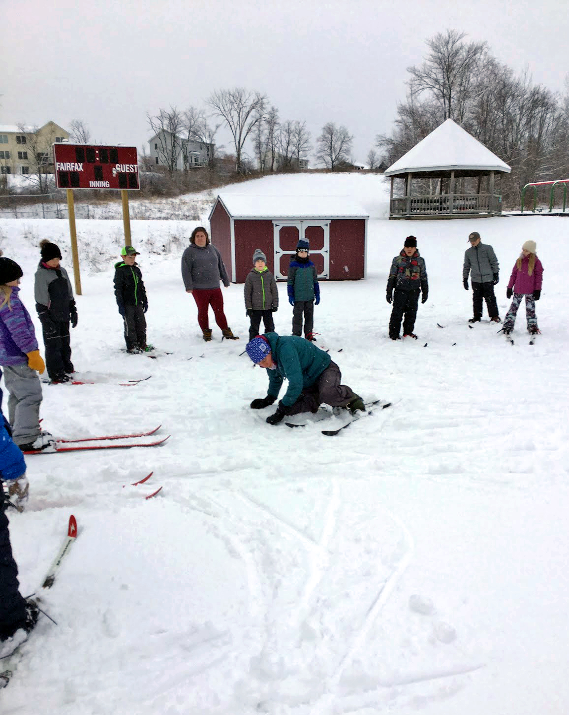 Students were taught the basics of classic skiing – how to move around on skis, develop basic skills and techniques, and practice those skills through games and skiing on the groomed trail that had tracks laid as well for students to follow.