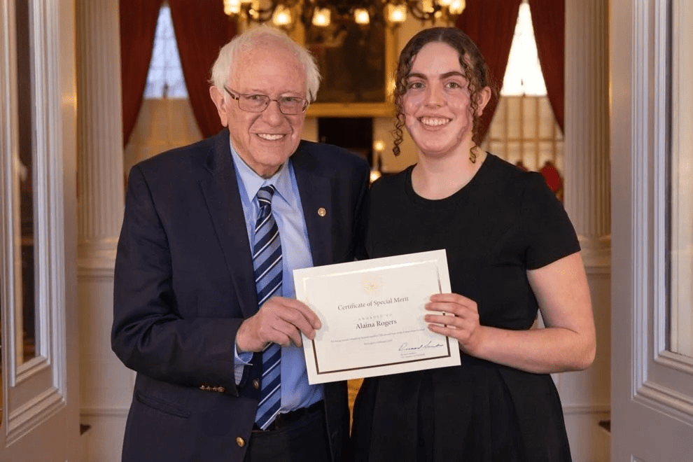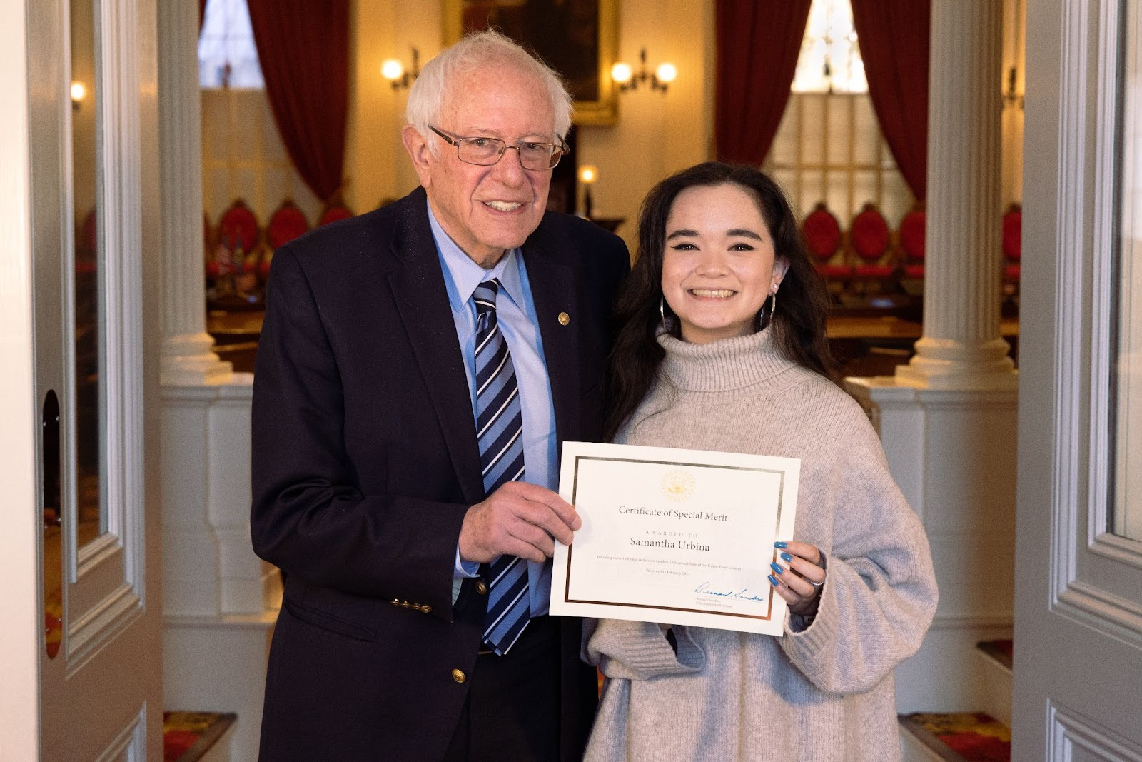 Junior Alaina Rogers: “This was an amazing experience that I’ll never forget. At first, I was nervous about discussing such prominent and complex issues with a U.S. Senator. However, it was clear that Senator Sanders wanted us to participate and contribute our ideas and that these discussions are something he enjoys doing. I felt that he took us very seriously and truly cared about what we had to say, and he treated us with the same respect that he might give thoughtful adult constituents or even other politicians”