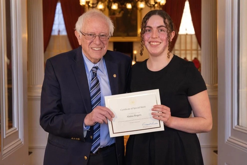 For 13 years, Senator Bernie Sanders has asked Vermont High School students to participate in his State of the Union Essay contest. This contest challenges students to highlight issues effecting the United States and Vermont and propose solutions. This year, almost 400 Vermont students wrote essays to Sanders. Three BFA-Fairfax students were chosen as finalists.